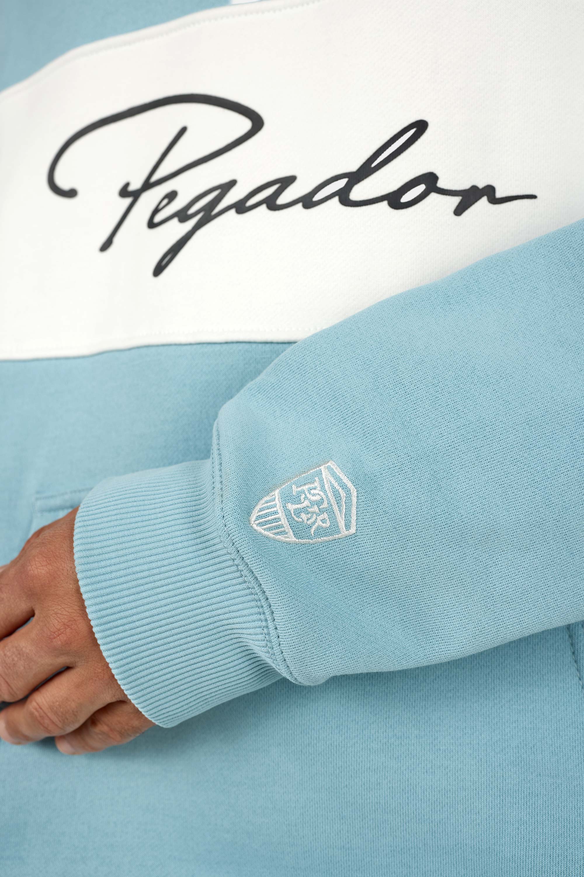 - logo embroidery to the sleeve