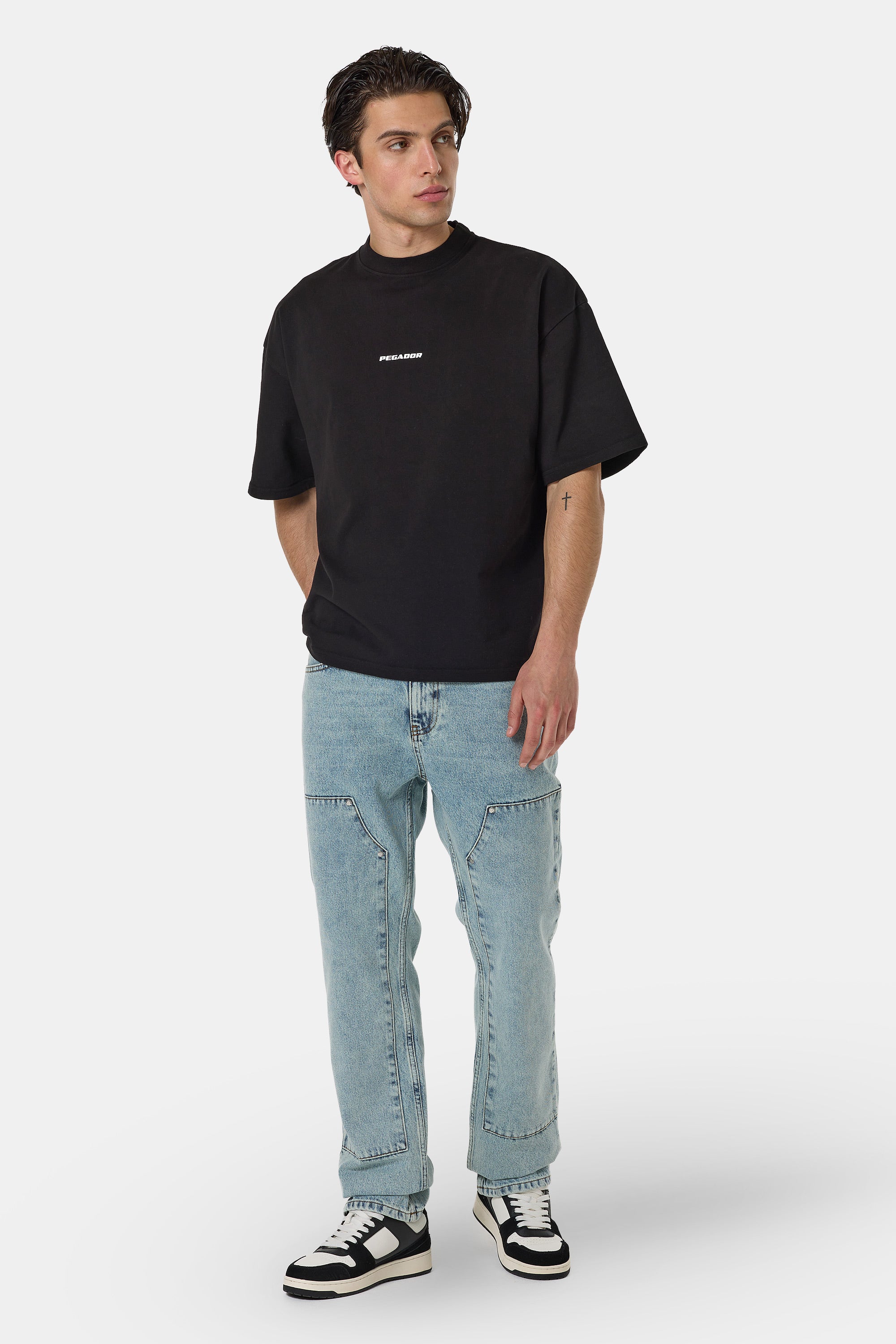 • silver metal logo patch to the right pocket