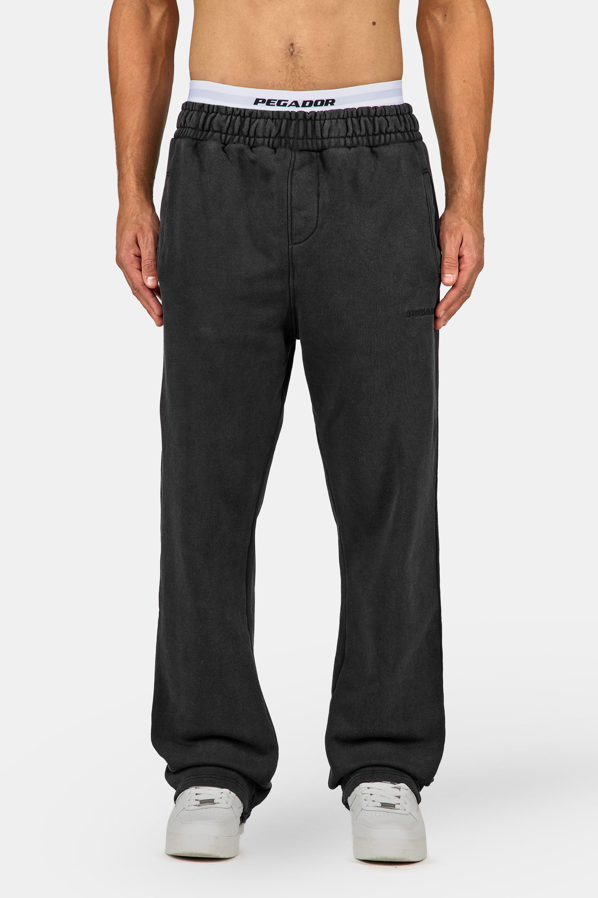 - black logo embroidery to the left leg