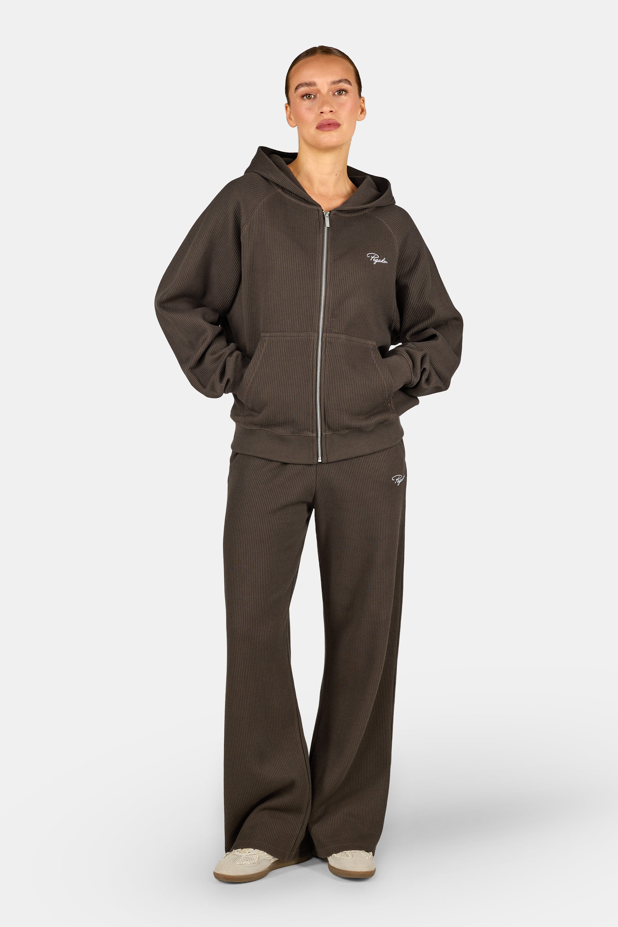 - washed walnut brown rib pants