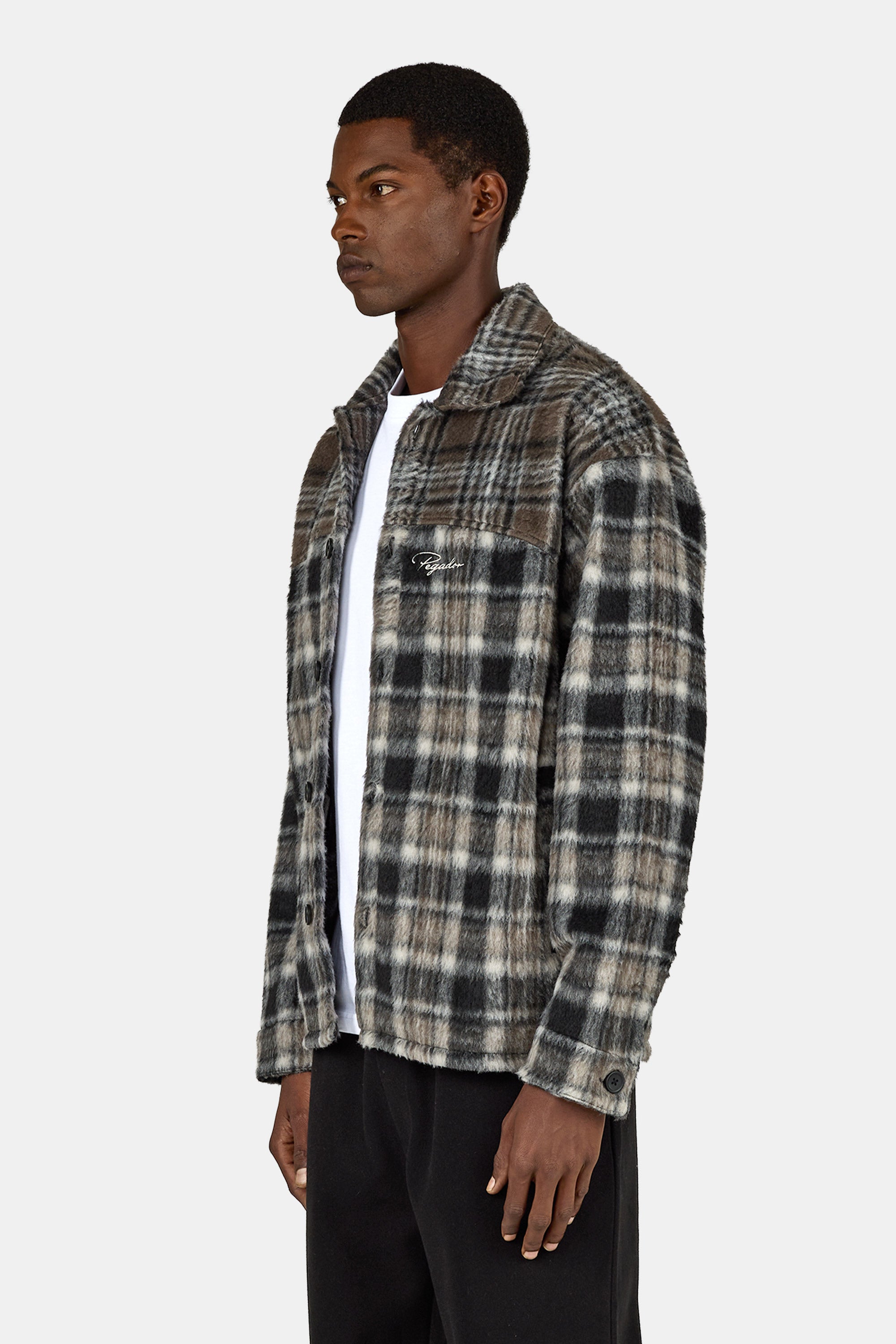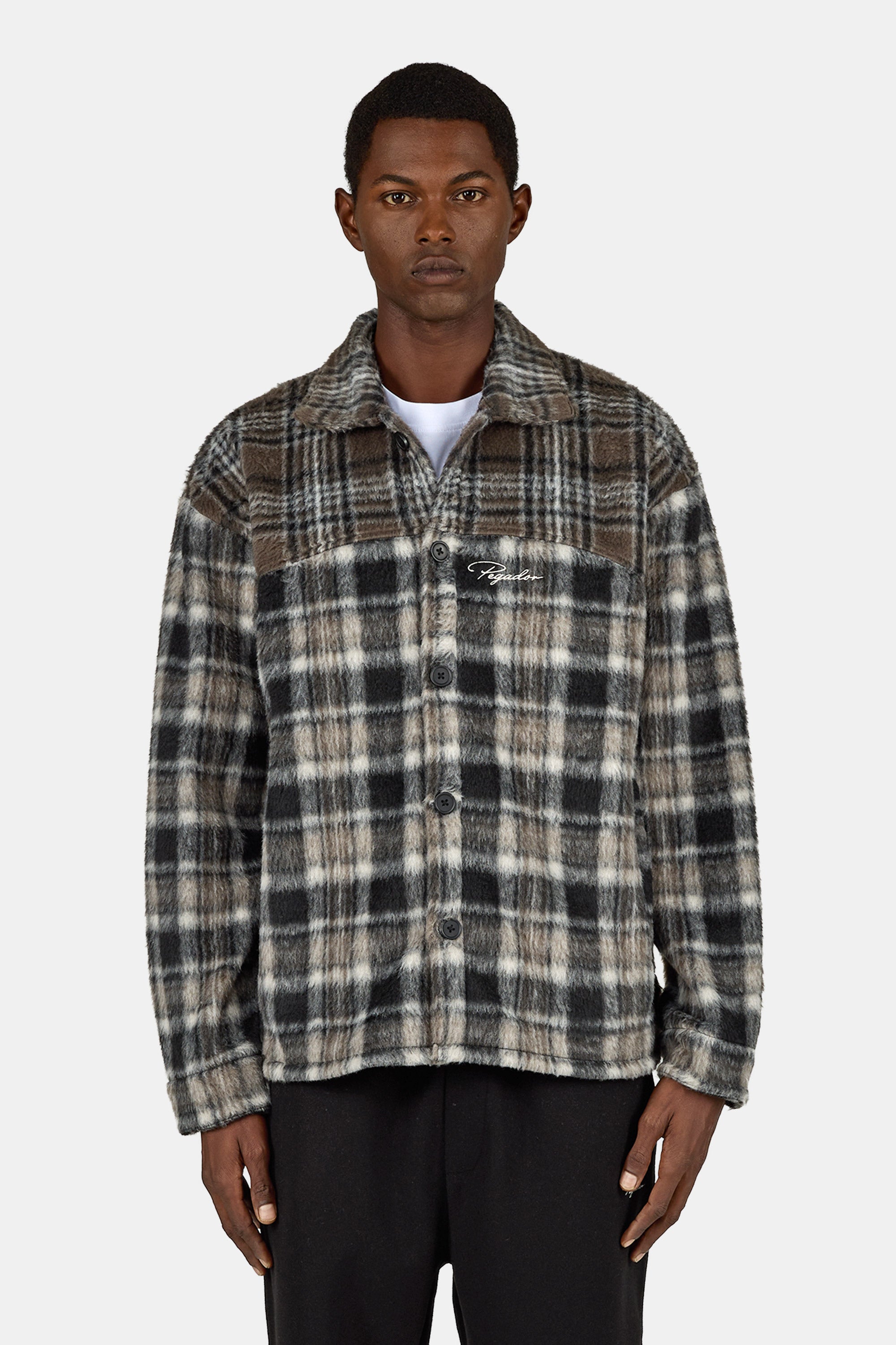 - checked black walnut brown flannel shirt