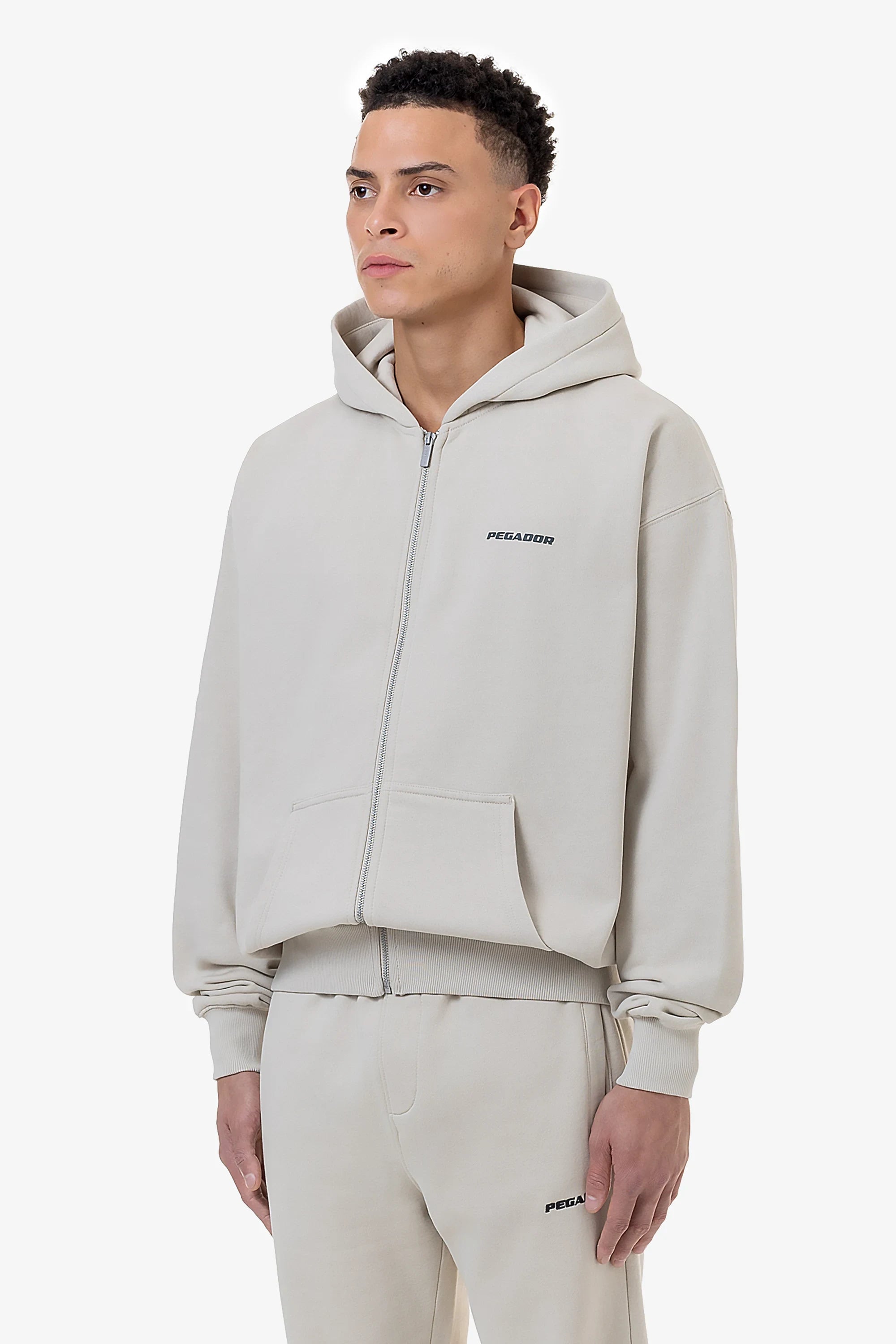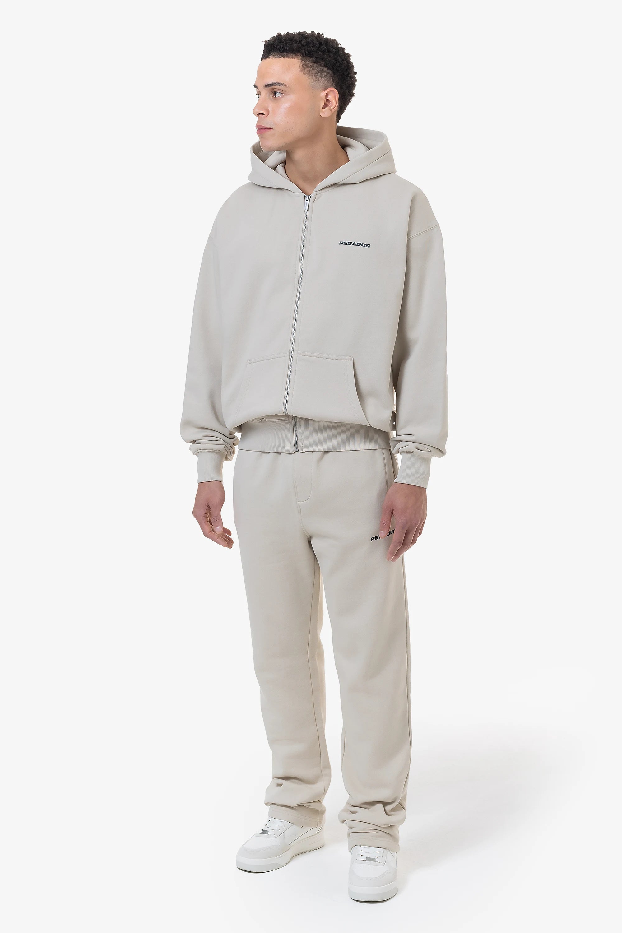 Colne Logo Oversized Sweat Jacket Washed Light Beige