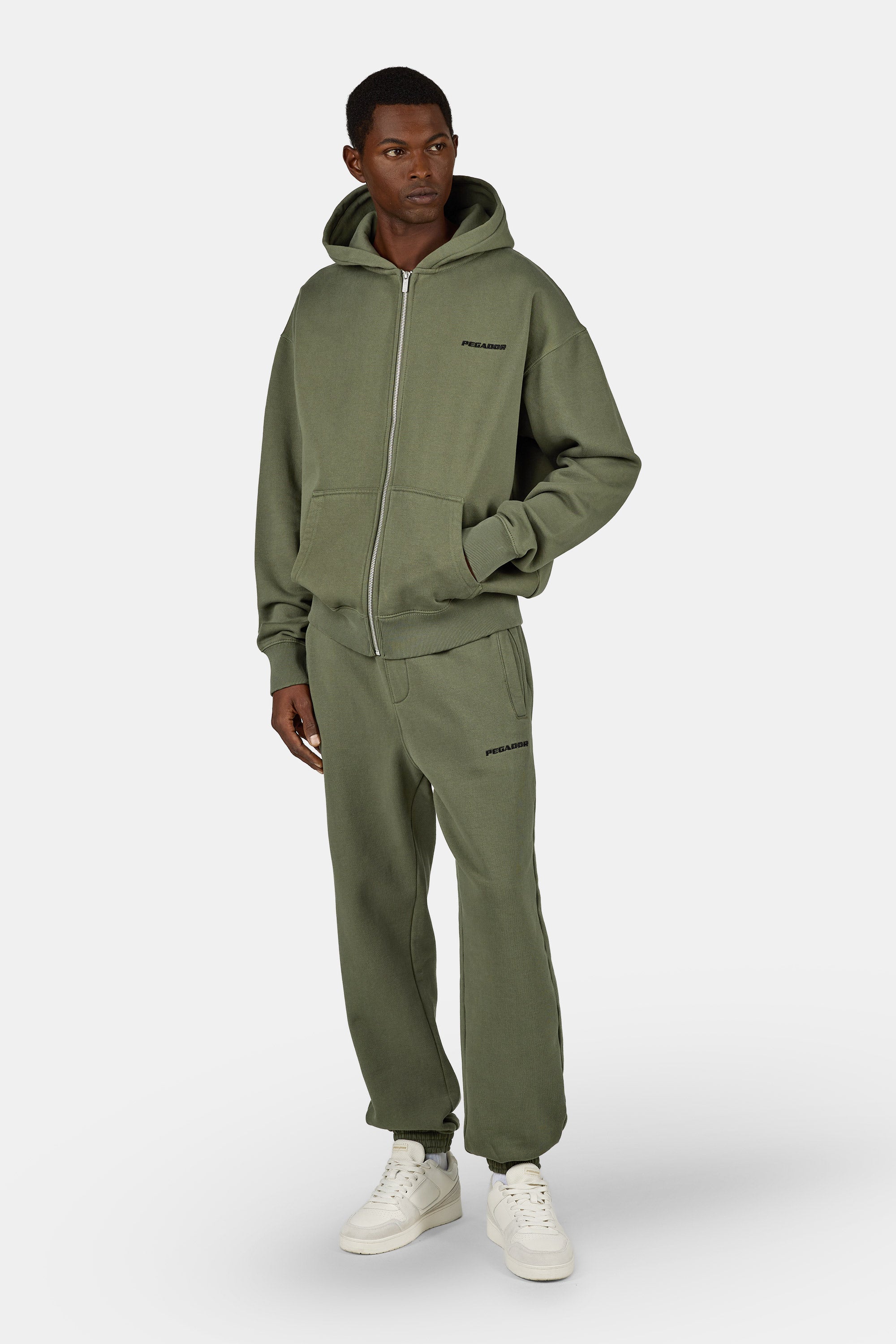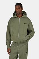 Logo Oversized Sweat Jacket Washed Faded Olive