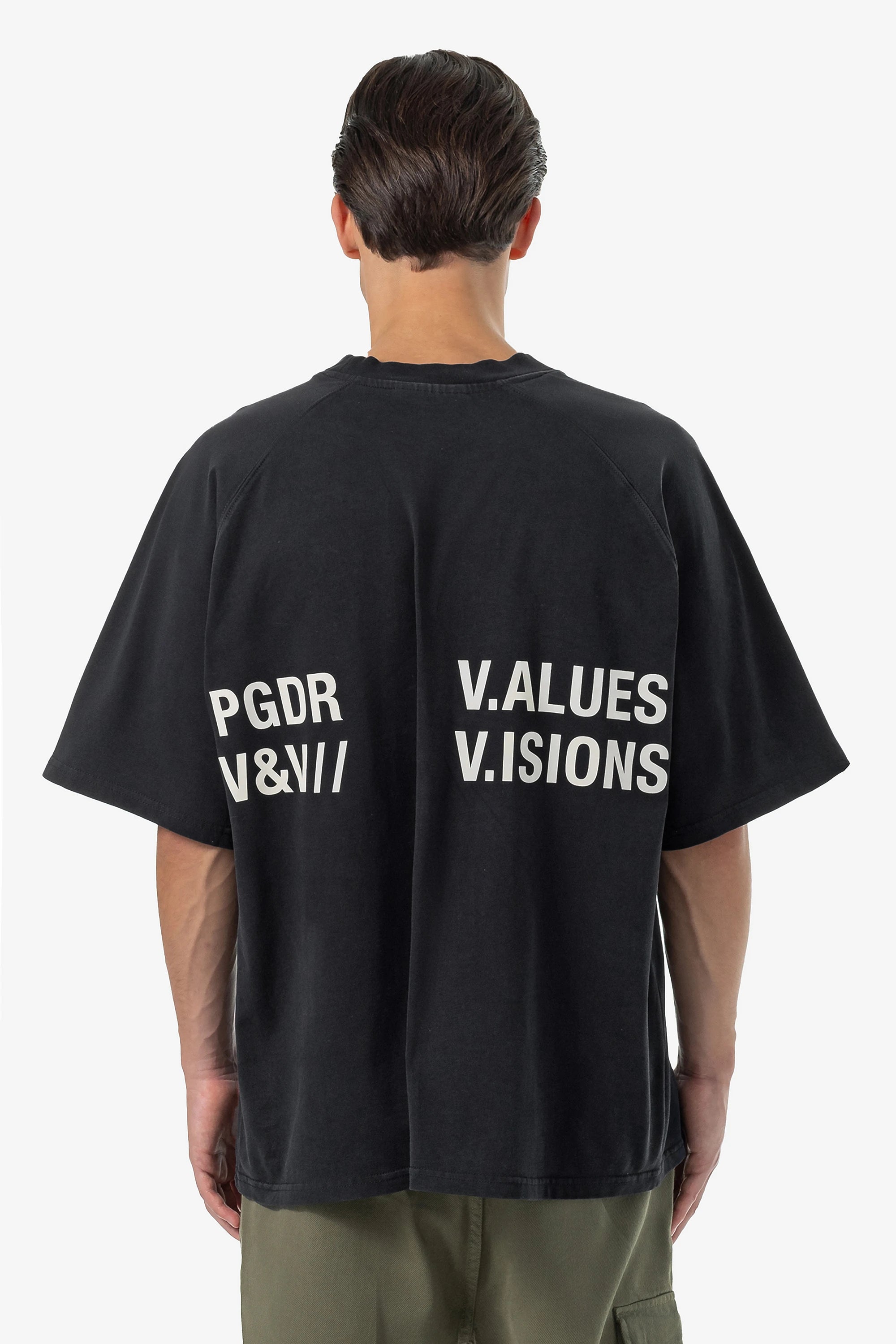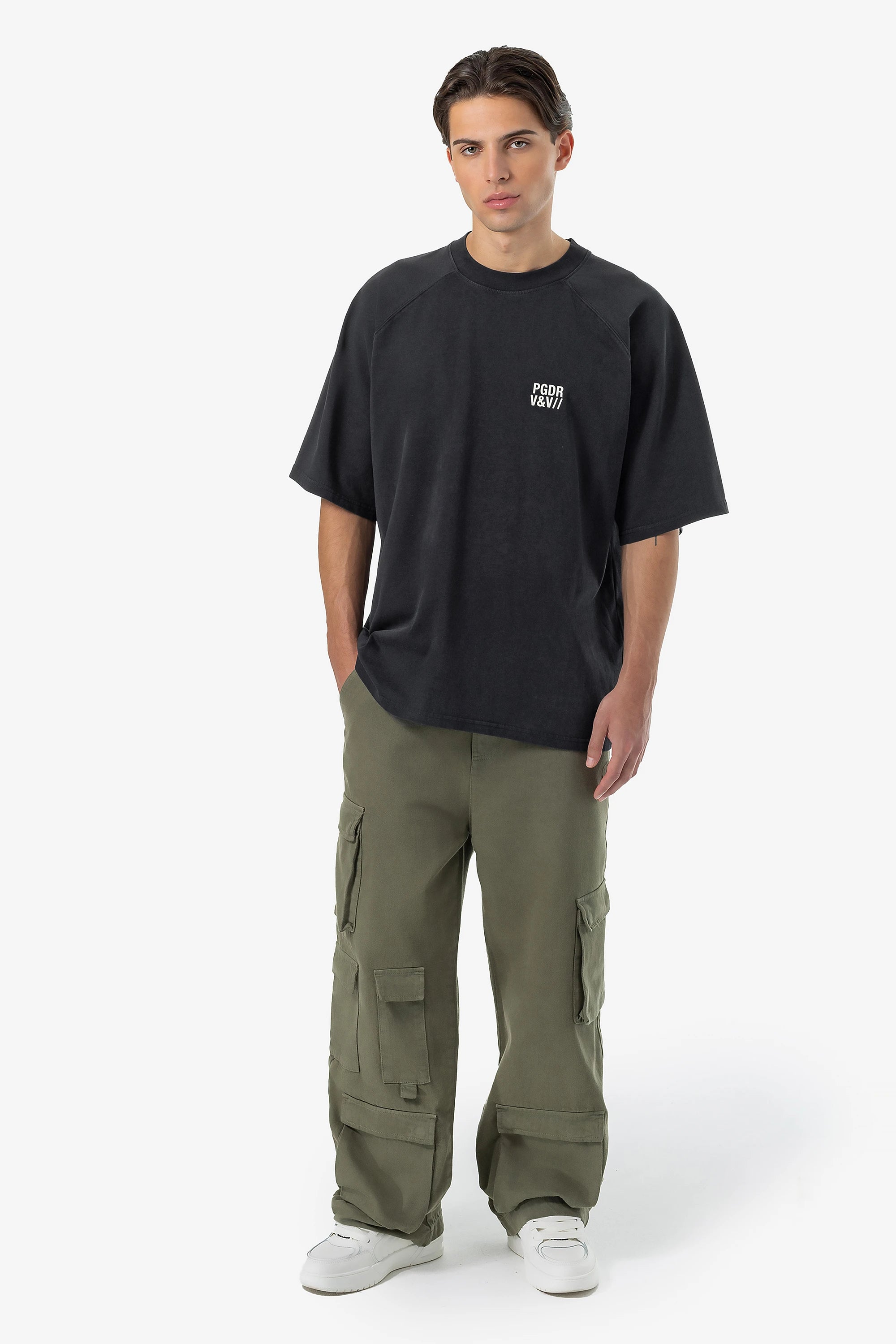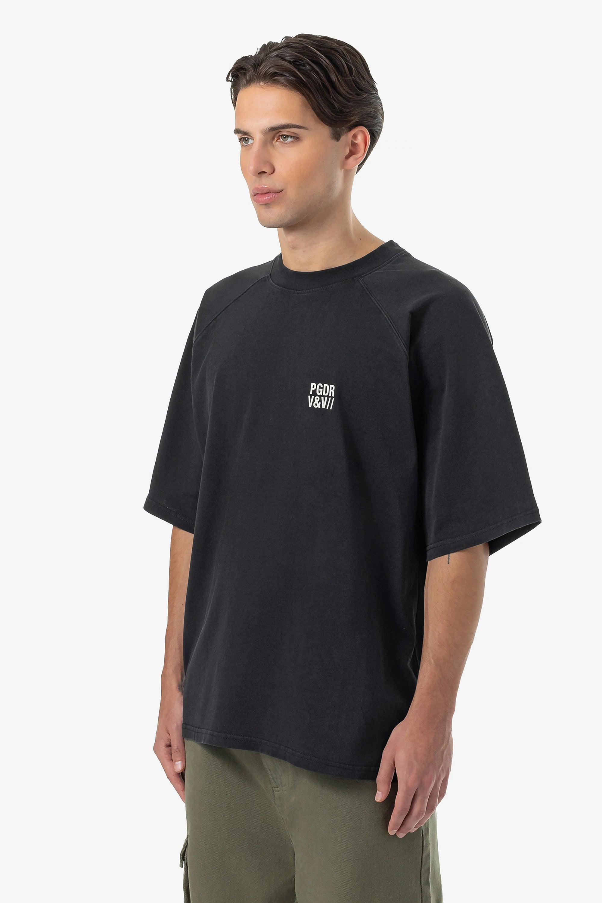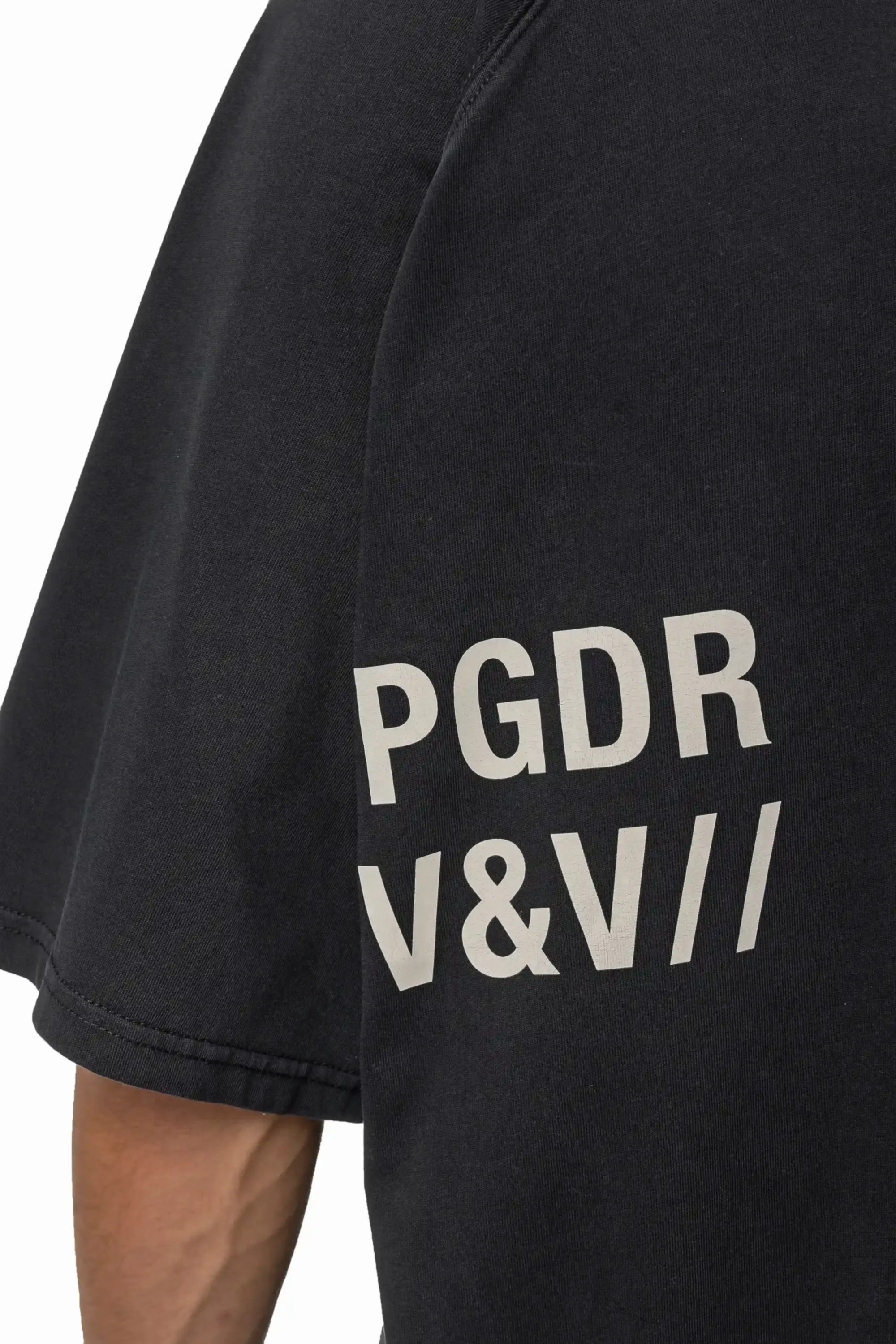 - unbleached "pgdr" cracked print to the front and back