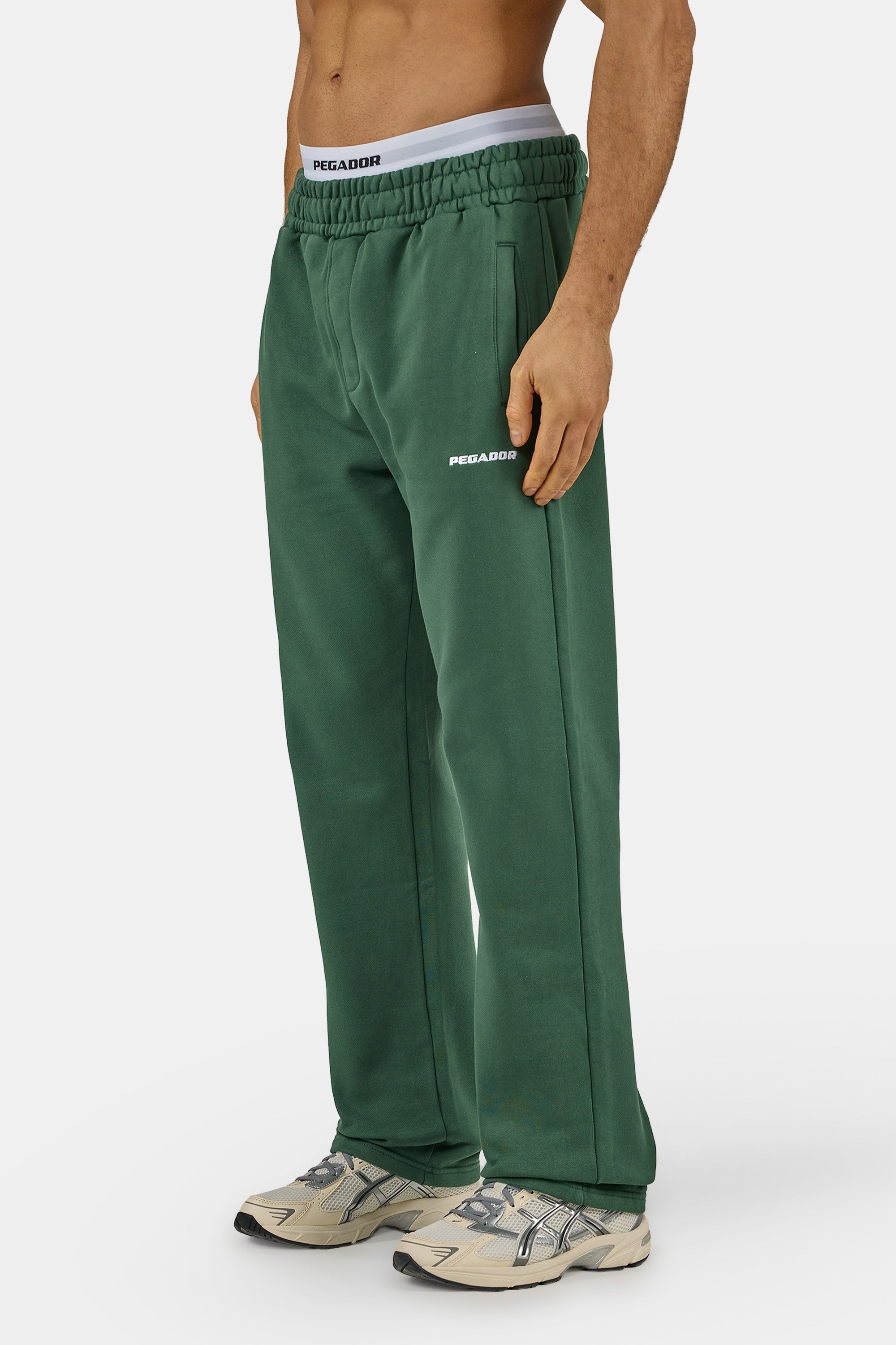 Logo Wide Sweat Pants Washed Solid Green