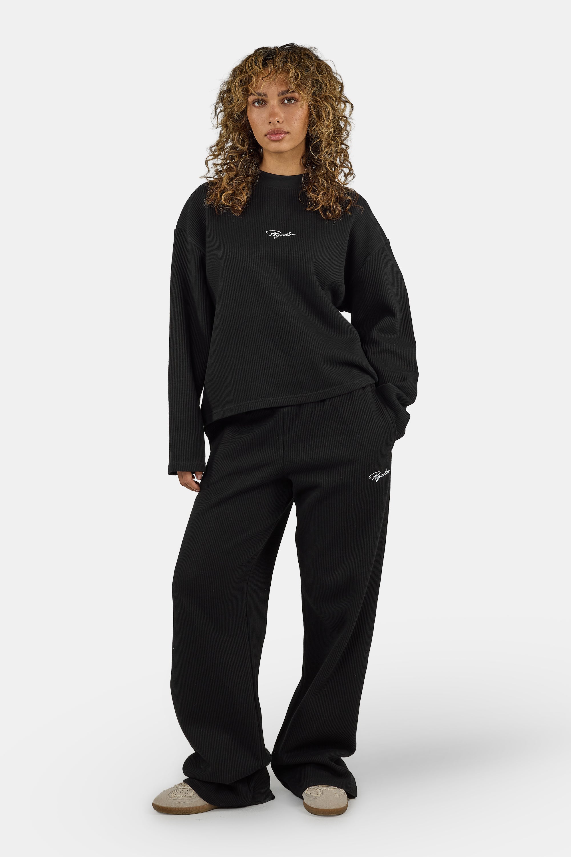 - schwarze gewaschene Ribbstrick Pants