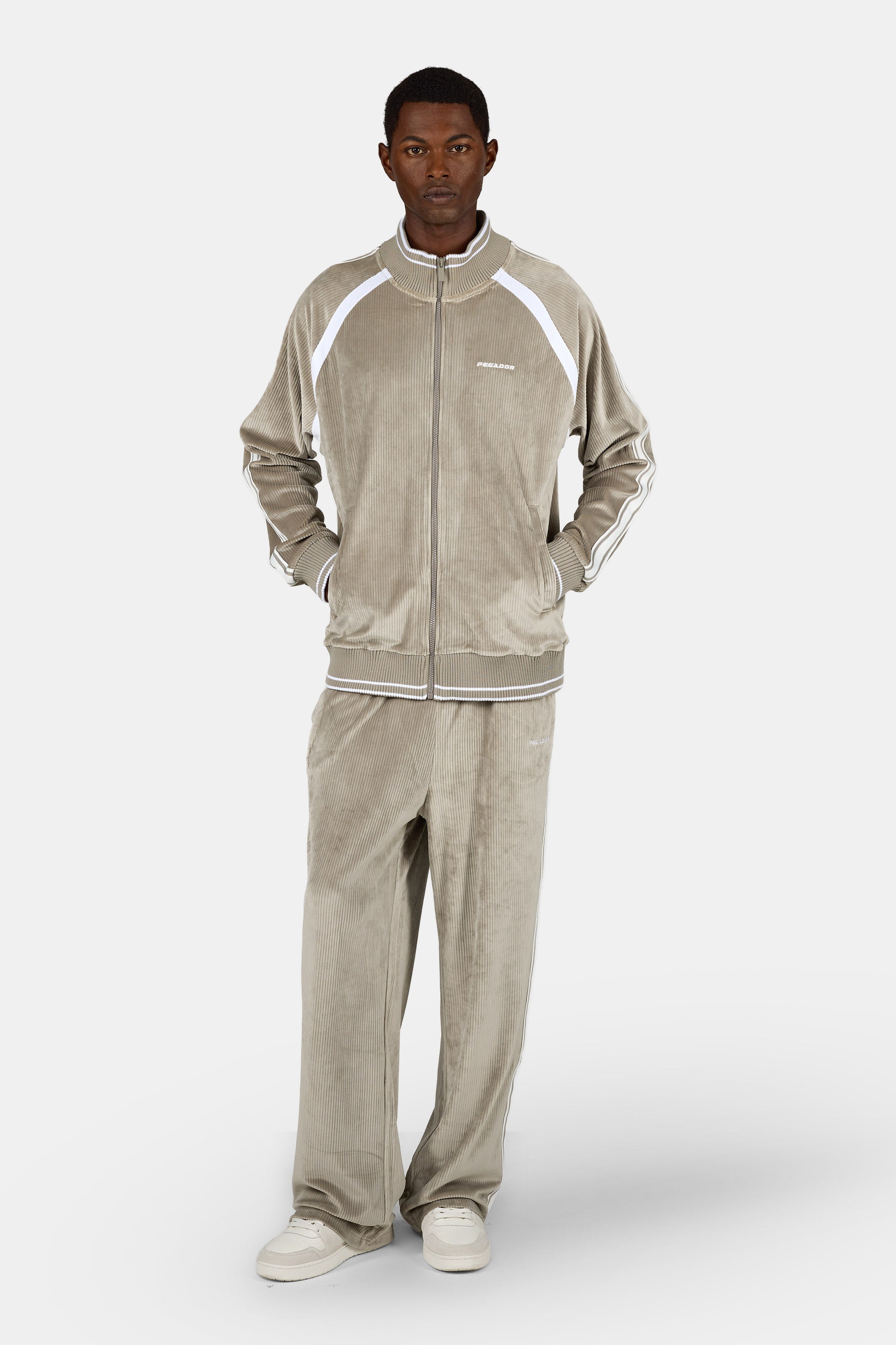 - flint grey farbiger Ripp Velours Track Pants