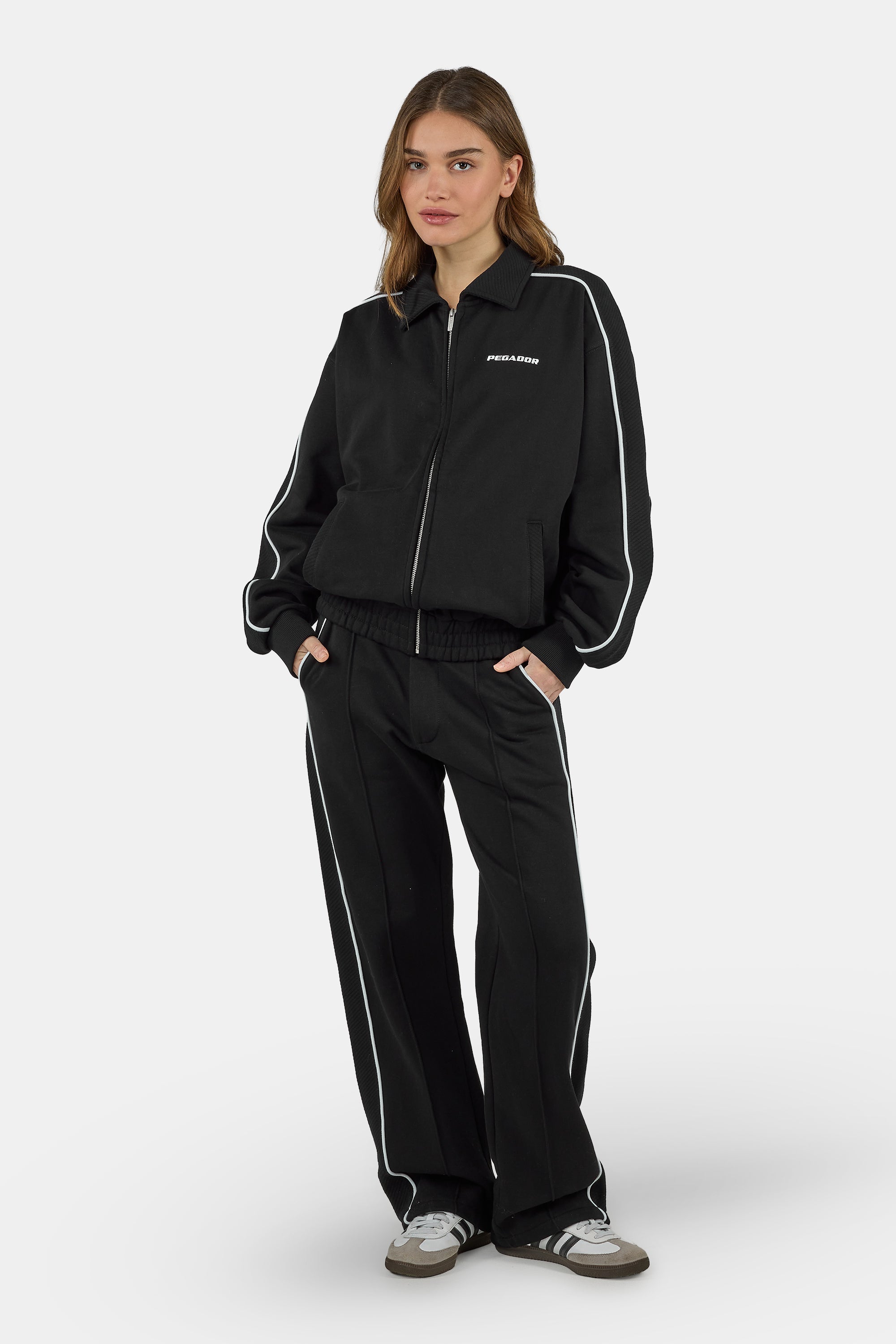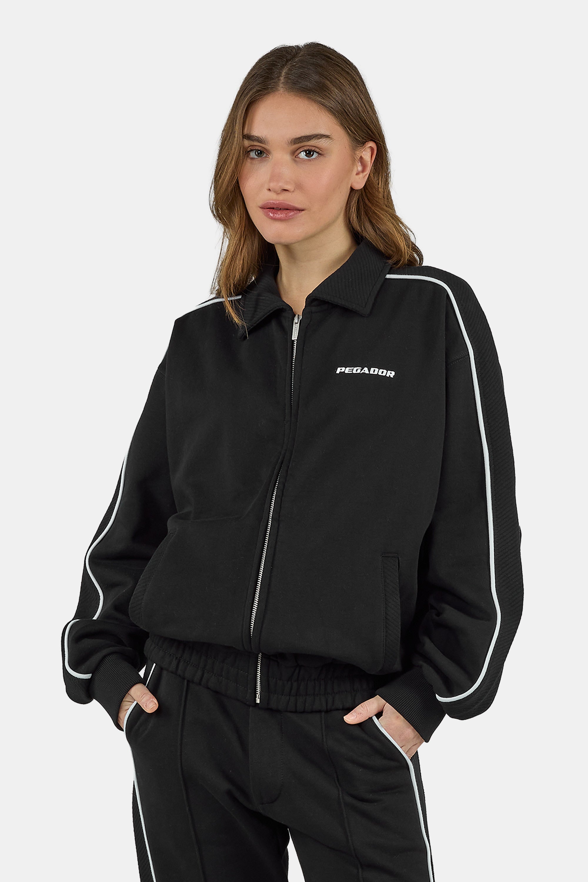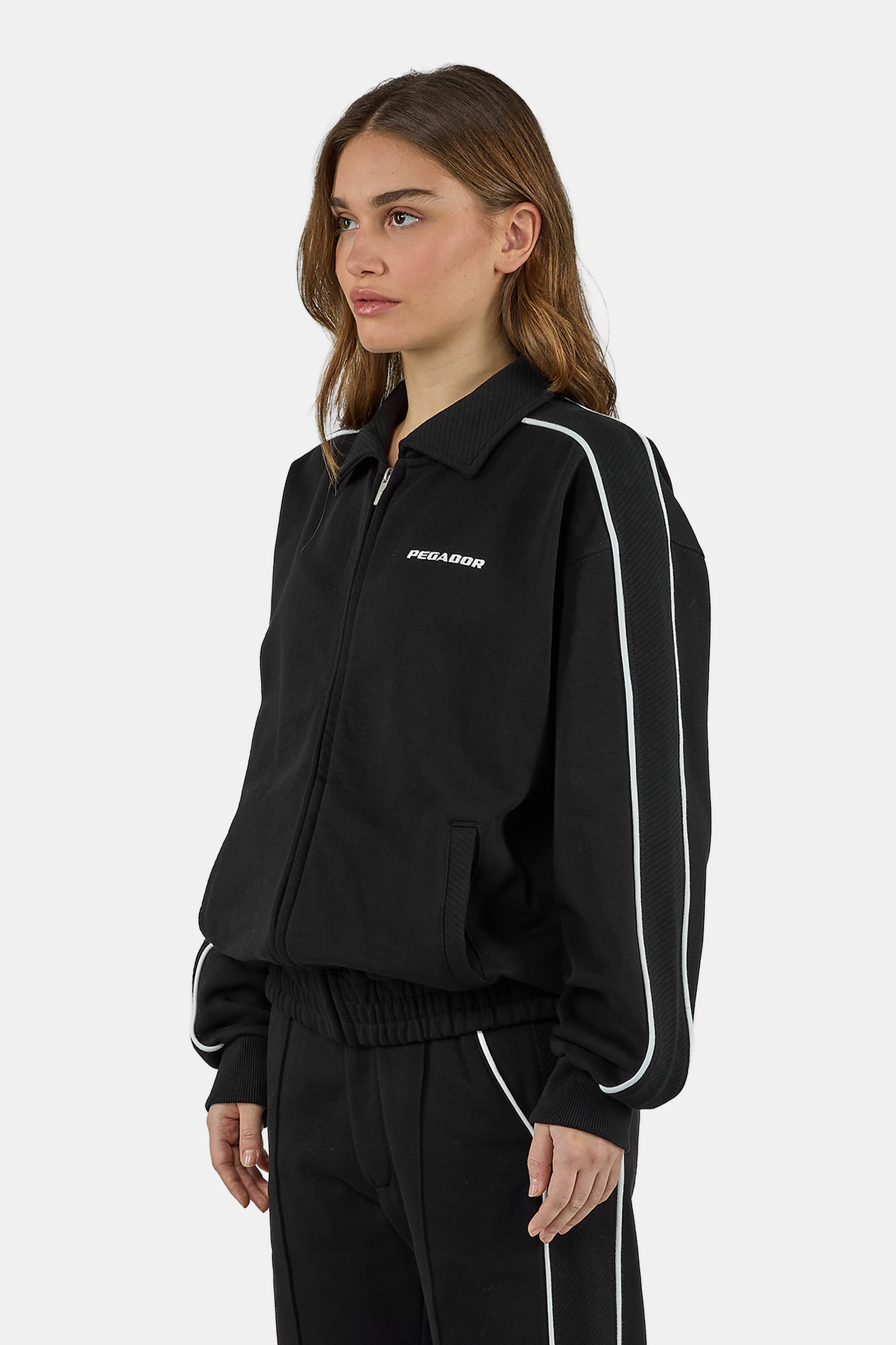 - washed black track jacket