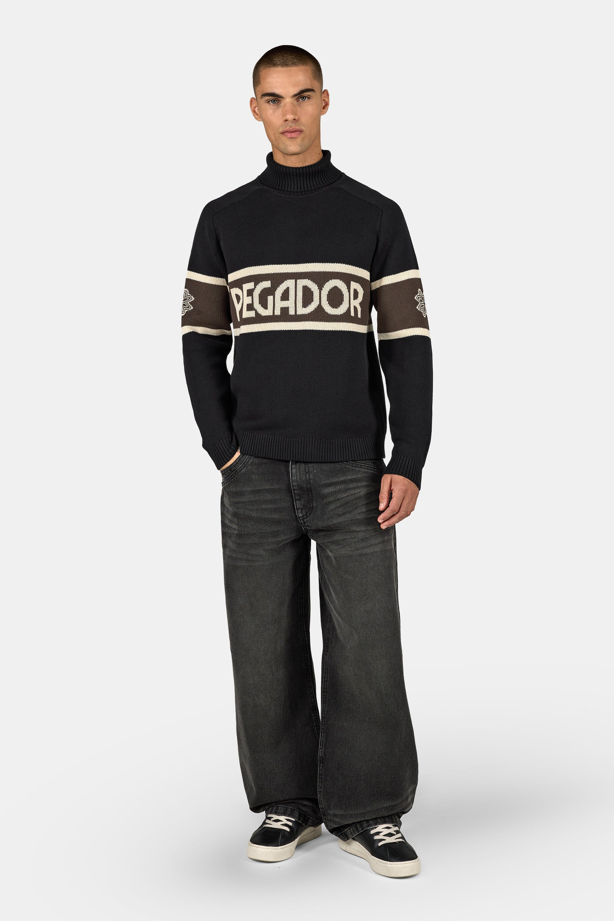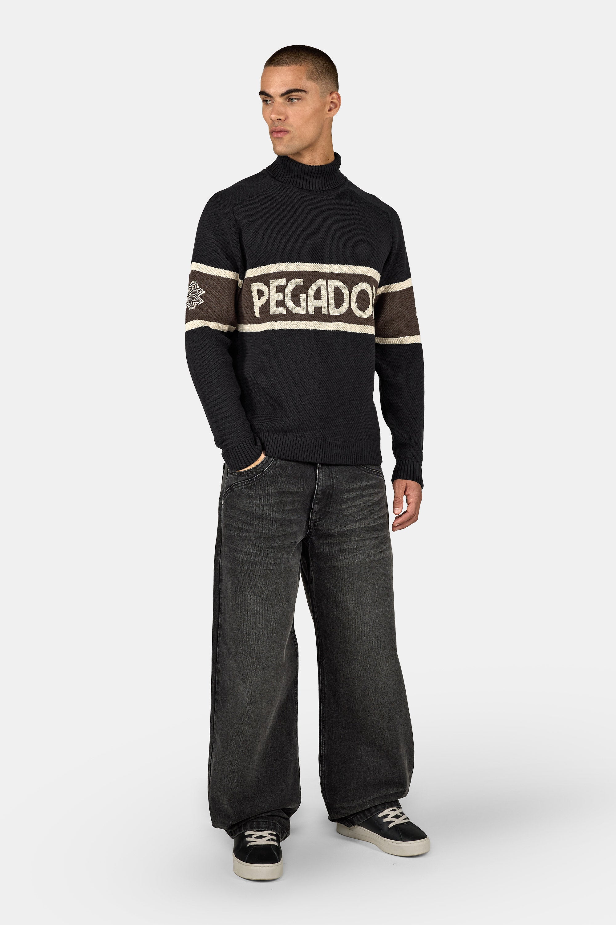 - schwarzes Turtelneck Knit Sweater