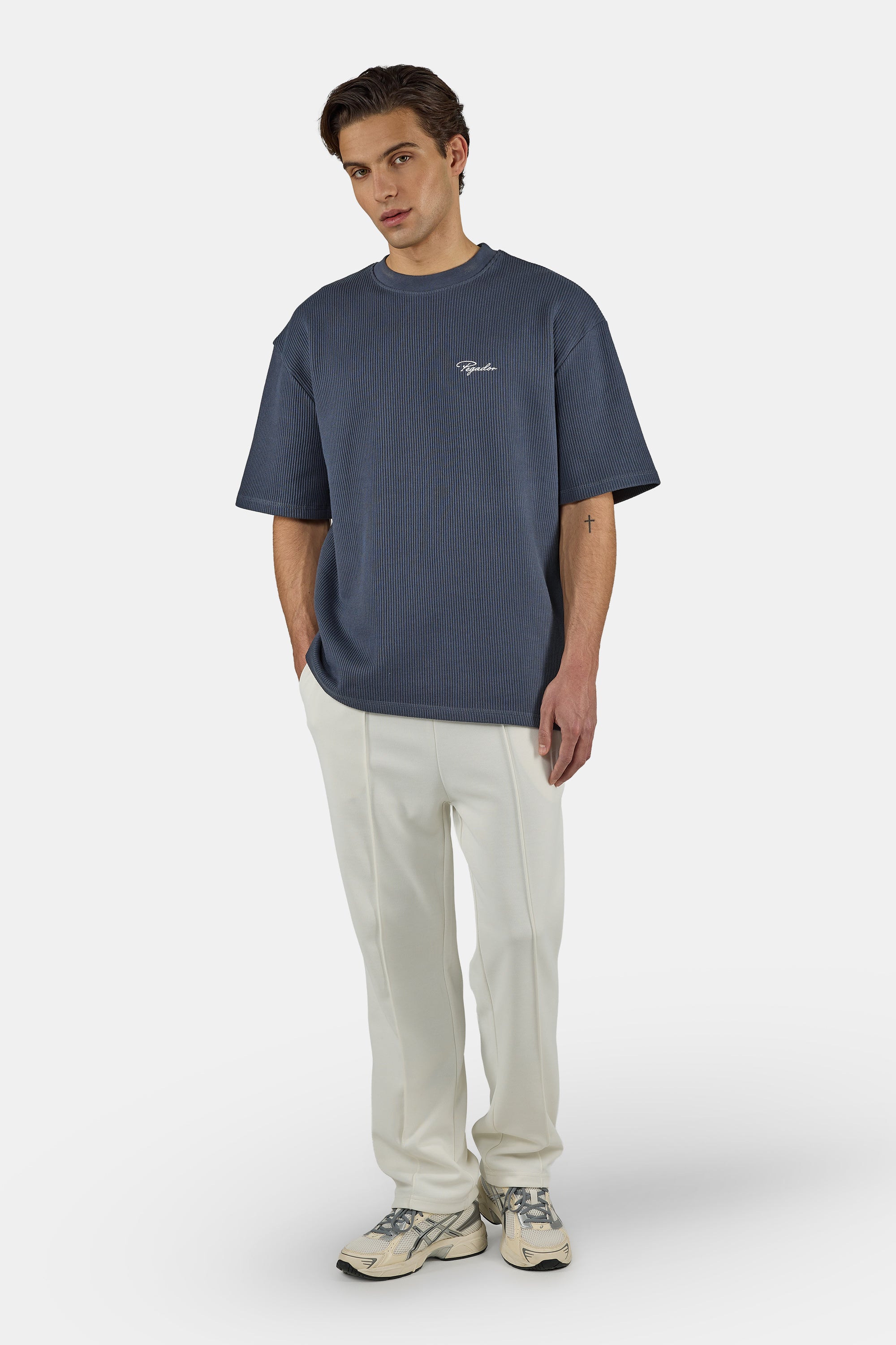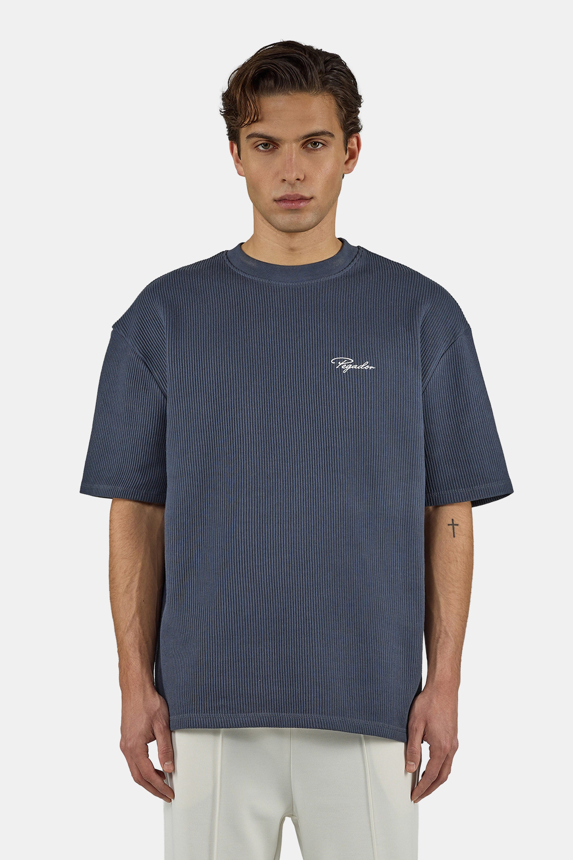 Signar Oversized Rib Tee Washed Twilight Blue White