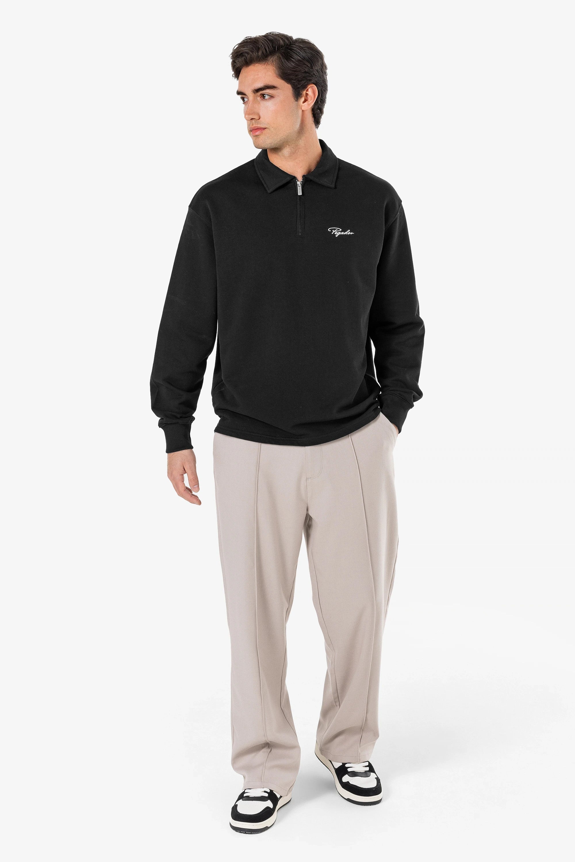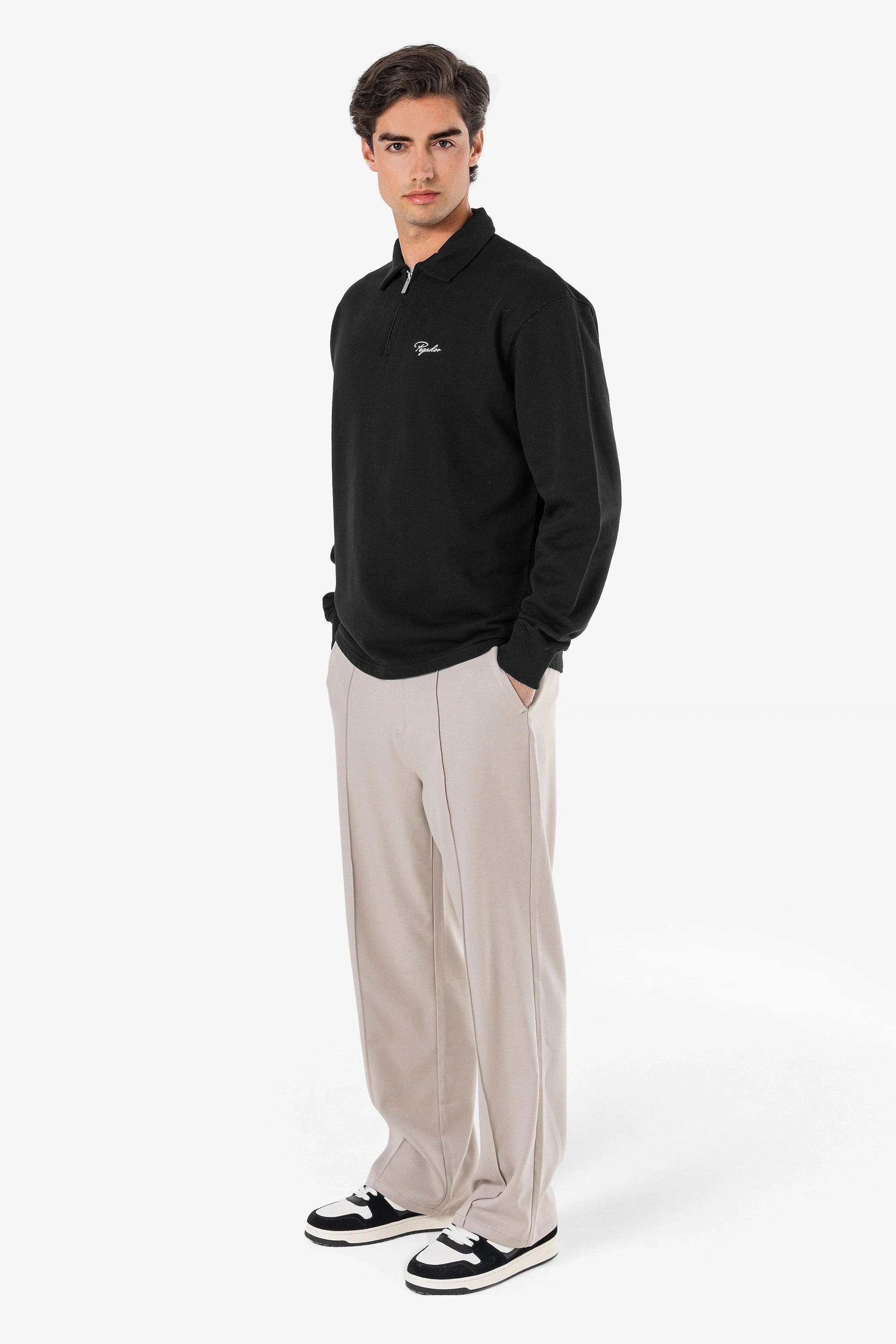 Signar Terry Polo Zip Longsleeve Washed Black White