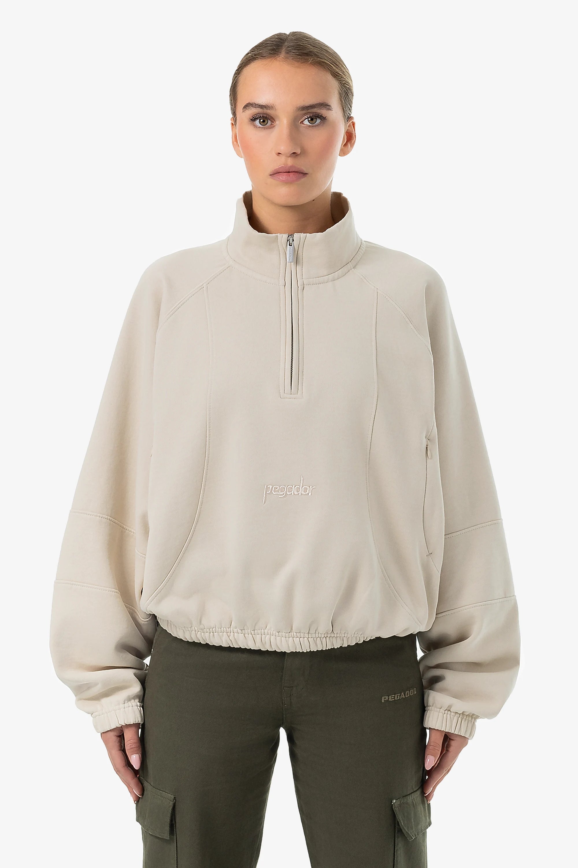 - hellbeige gewaschener Halfzip-Sweater