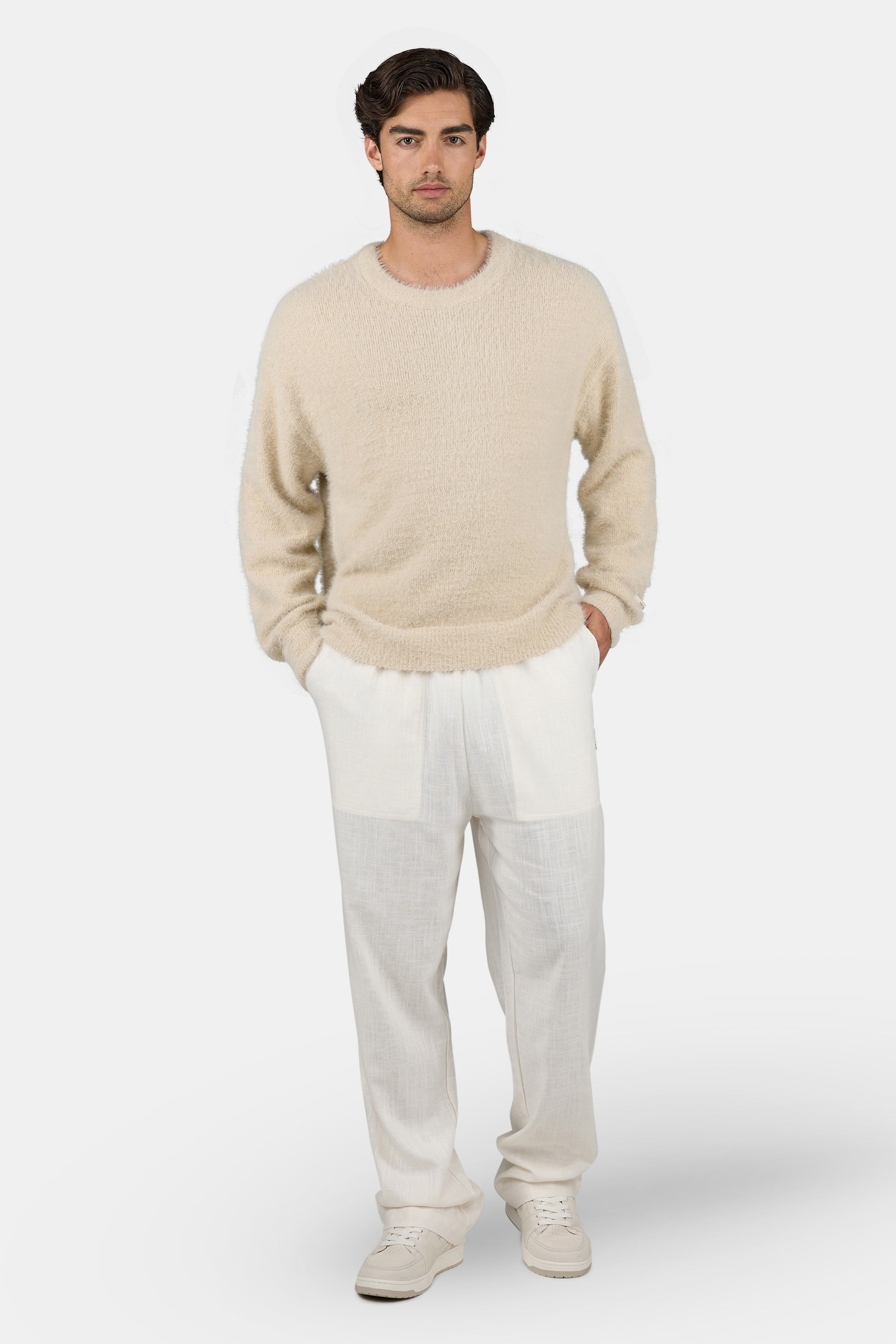 Waton Furry Knit Sweater Light Beige