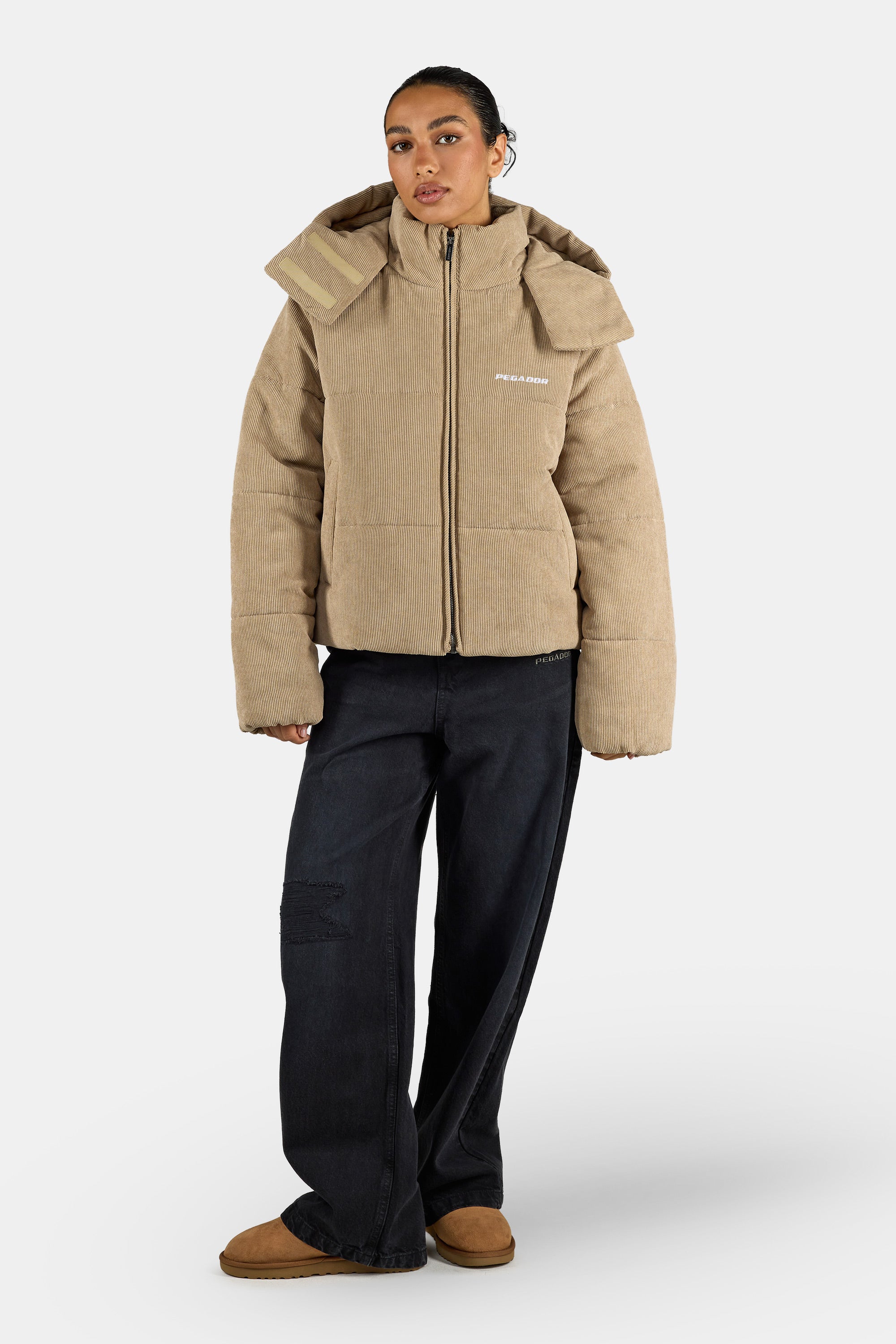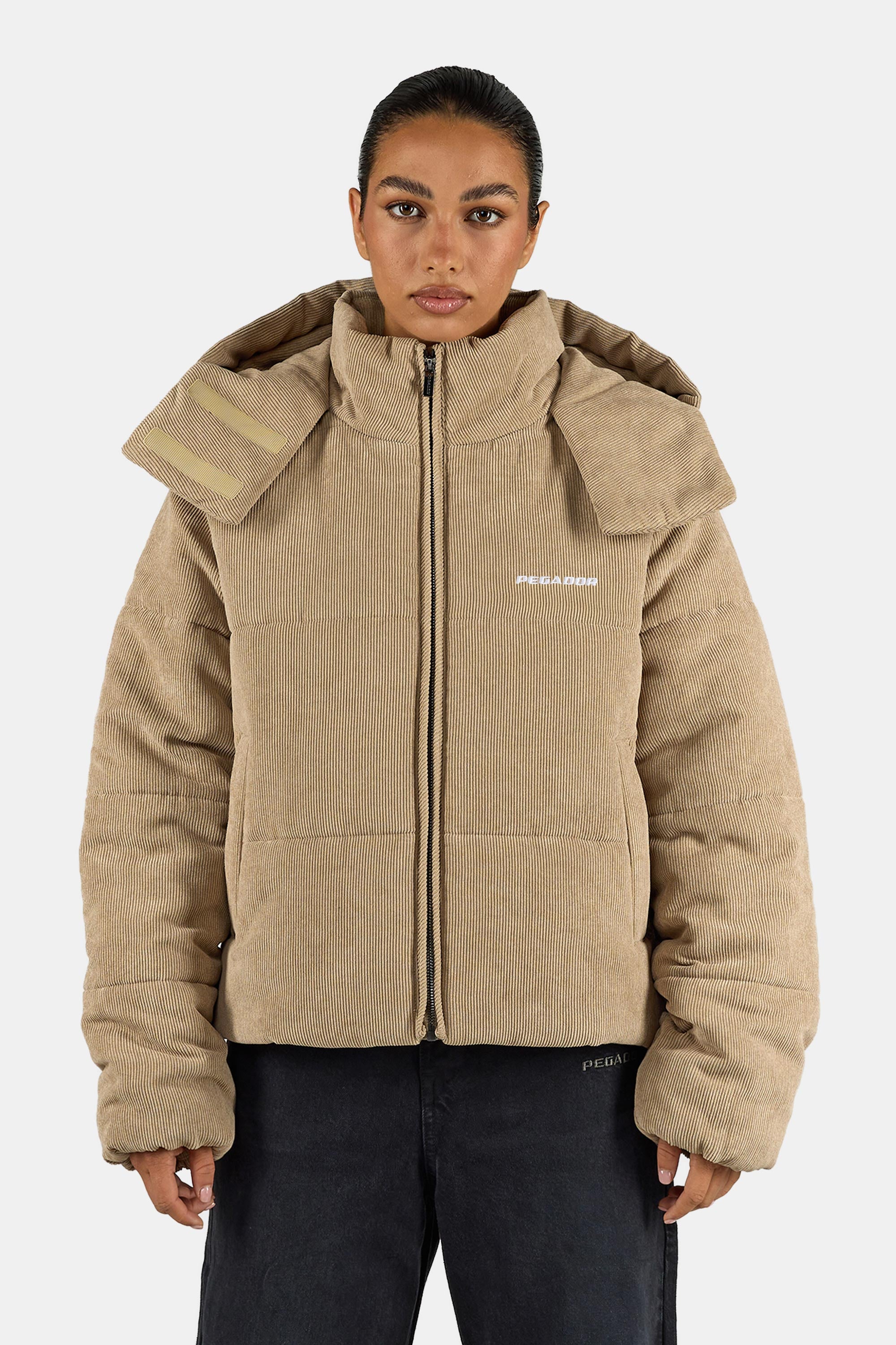 - sand corduroy puffer jacket