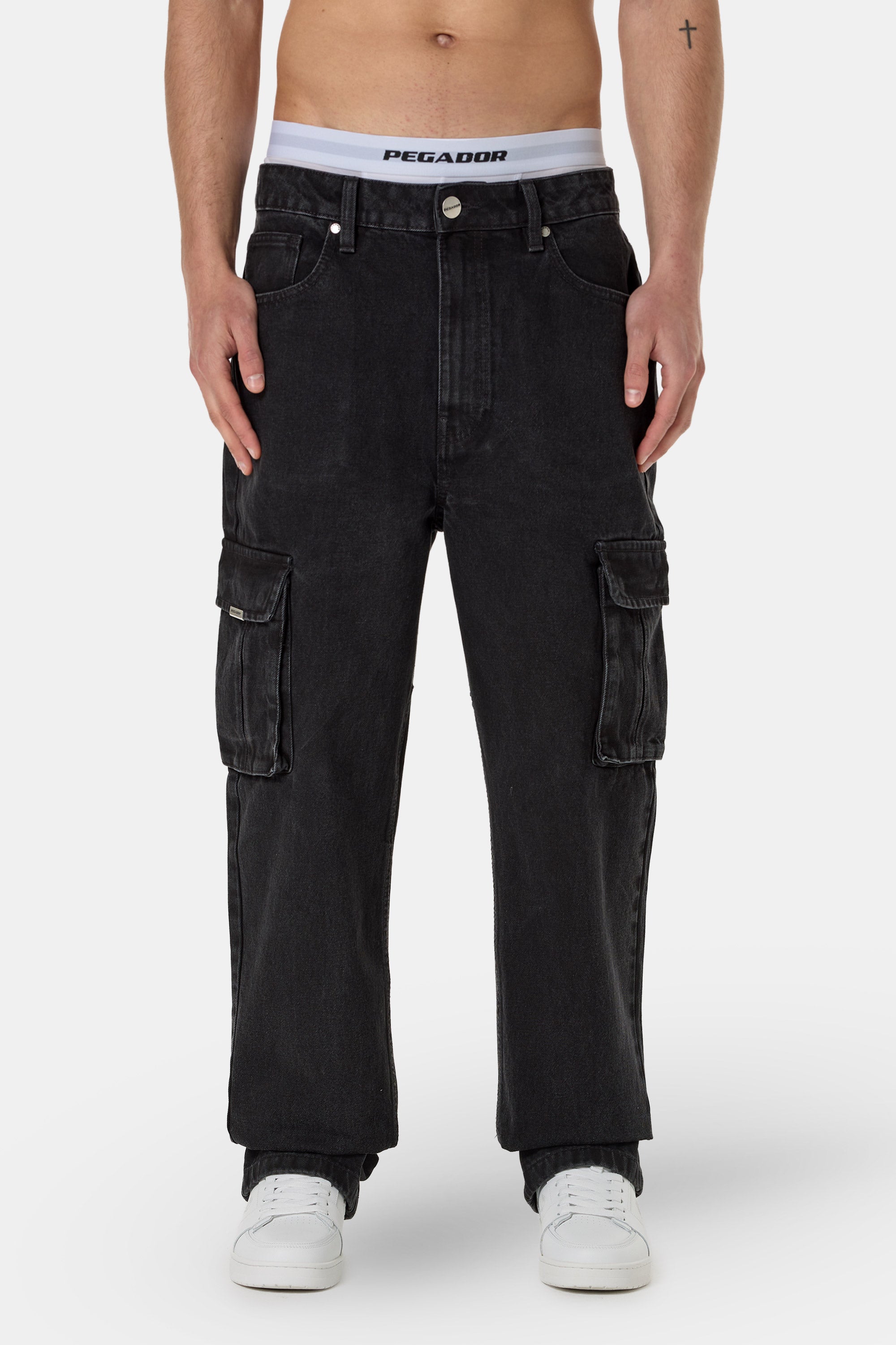 Dawes Cargo Baggy Jeans Washed Black