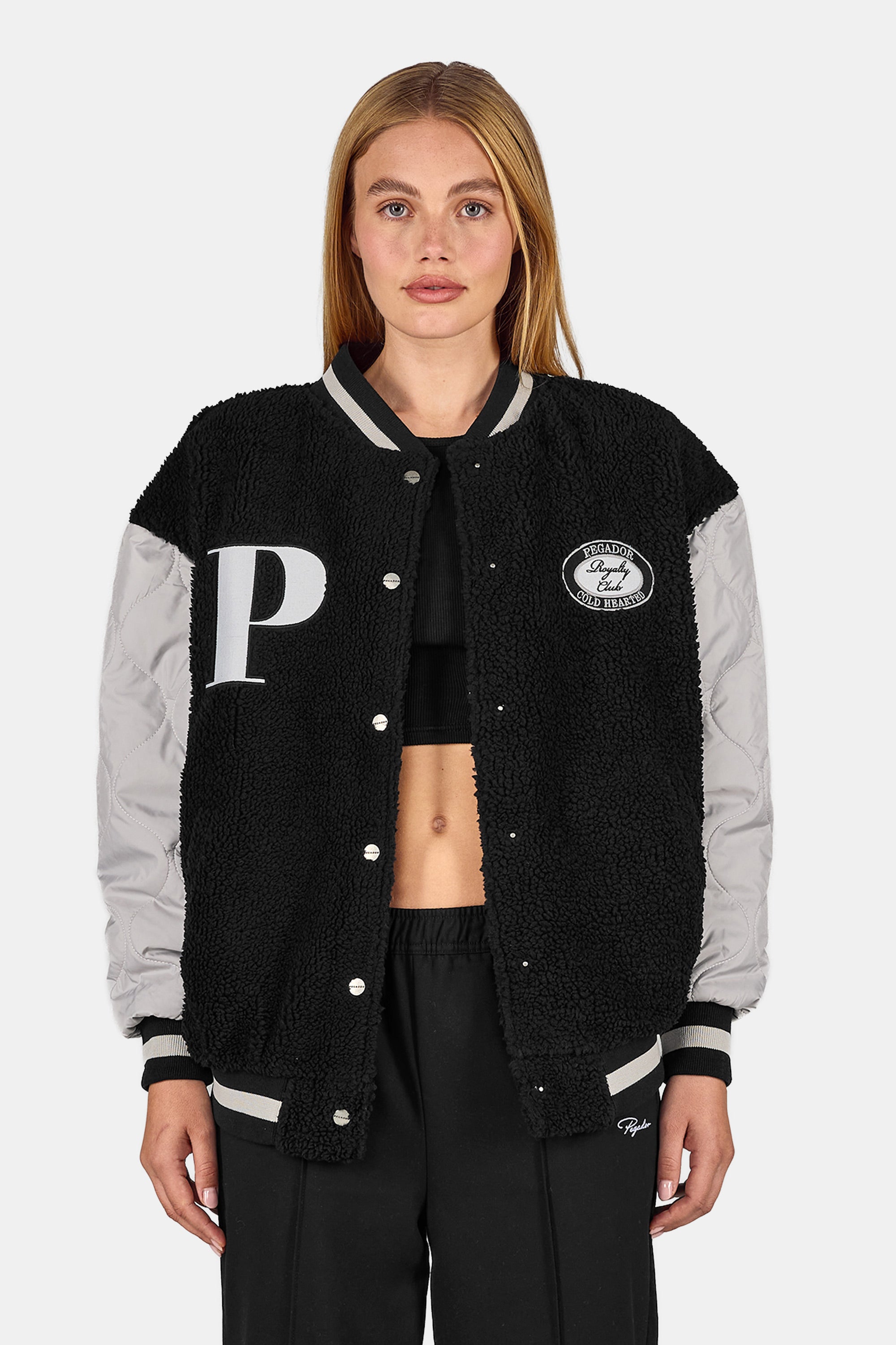 Draper Quilted Oversized Varsity Jacket Black