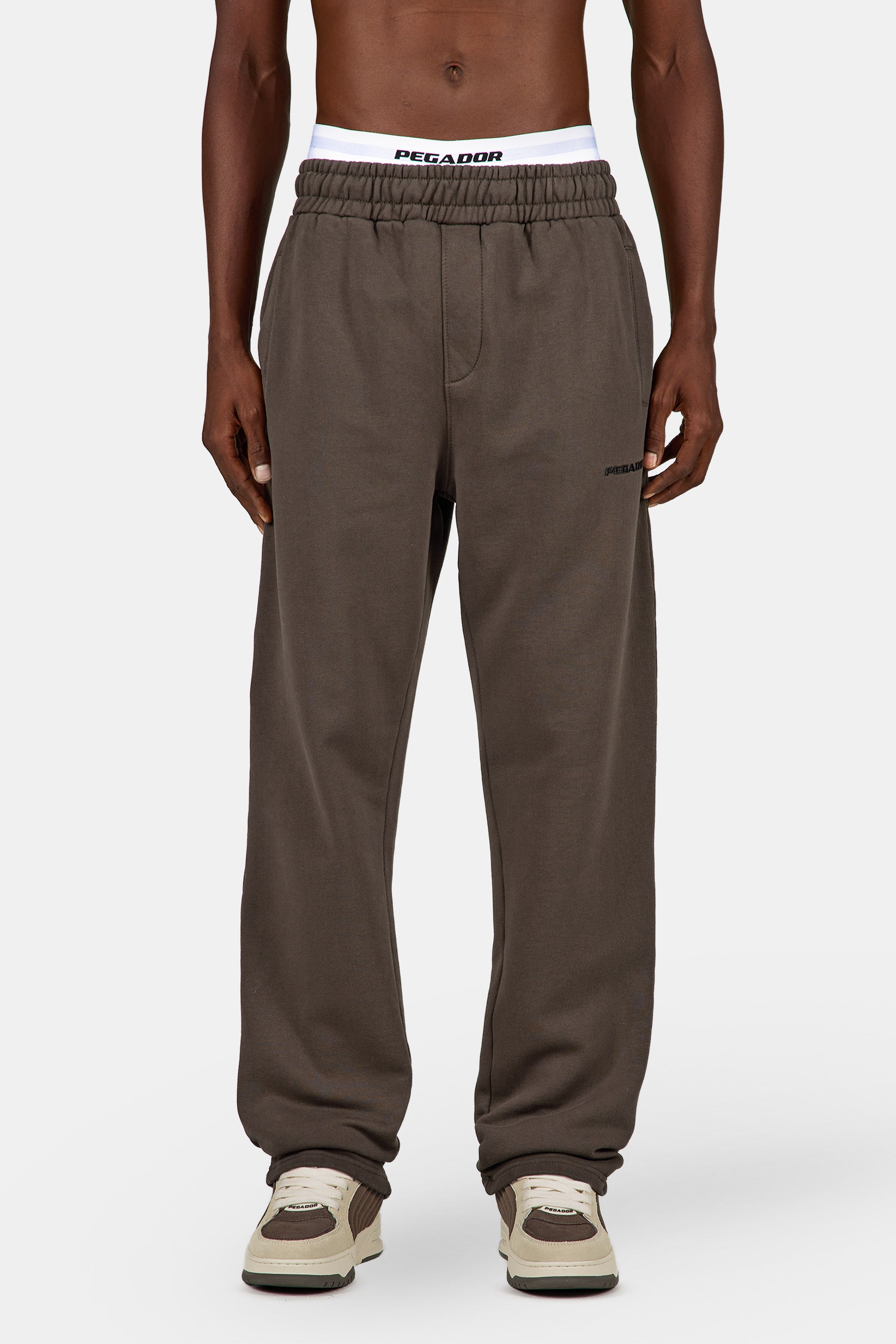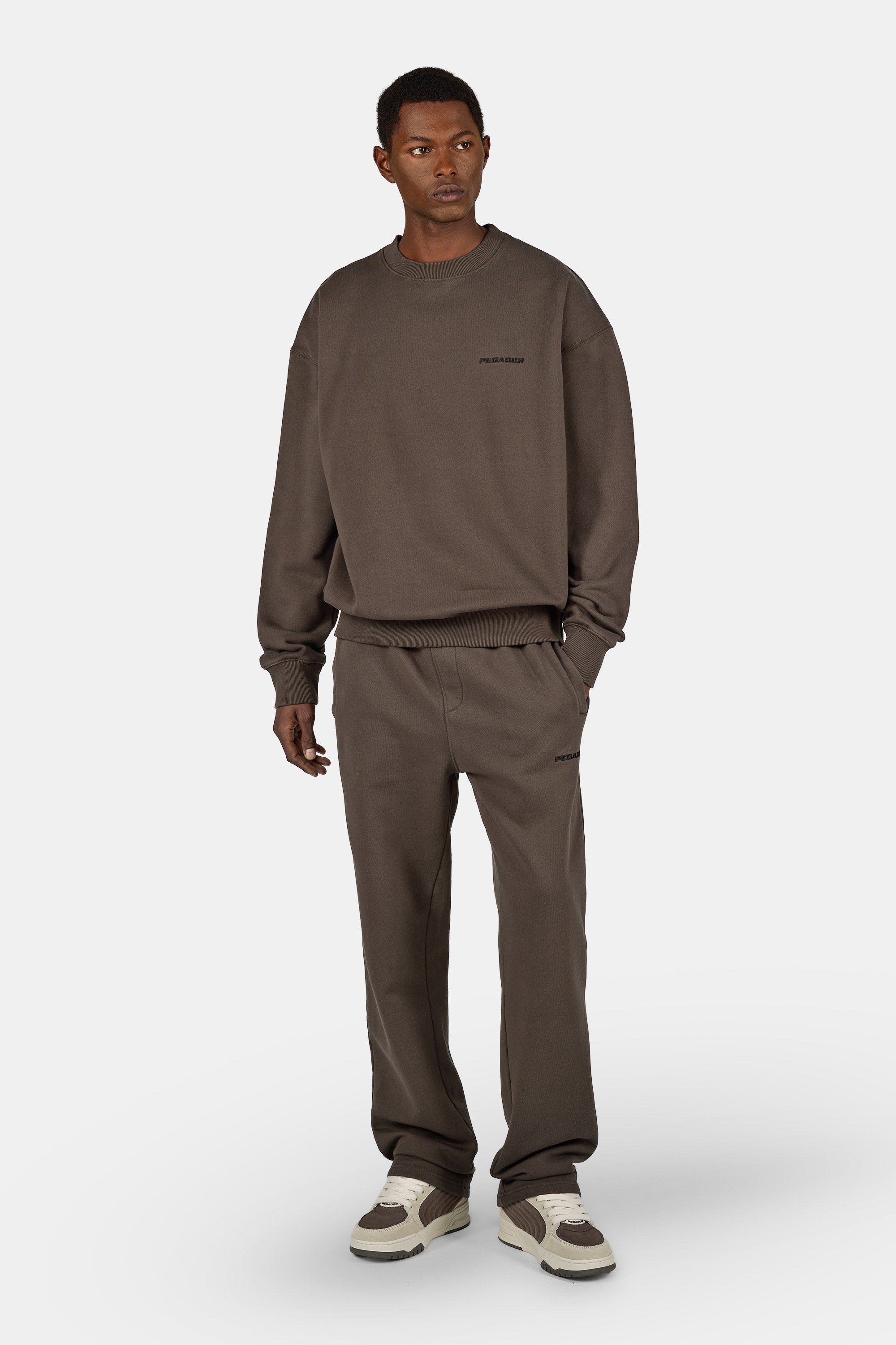 - washed walnut brown wide sweat pants