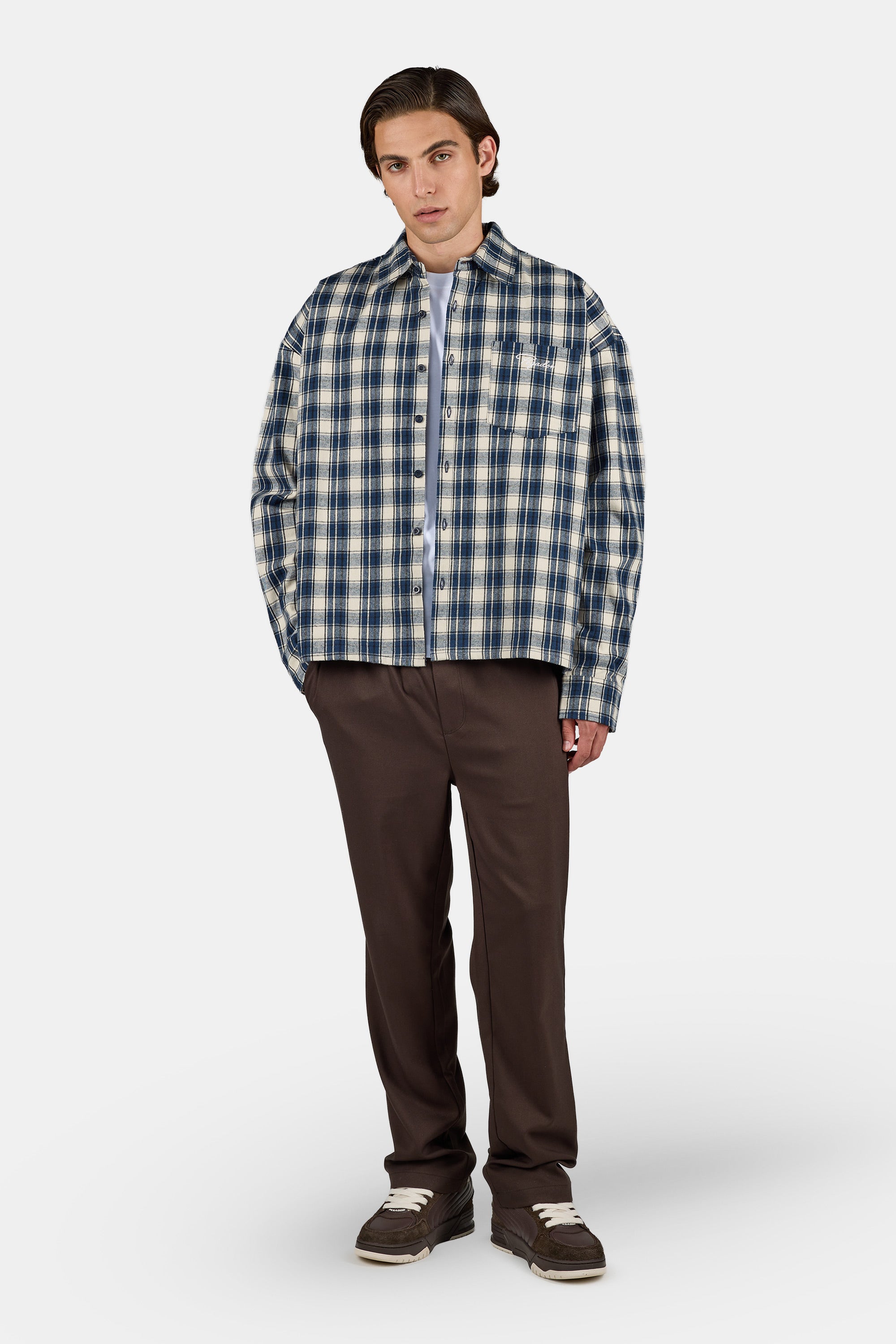 Signar Oversized Flannel Shirt Washed Checked Indigo Navy Stone