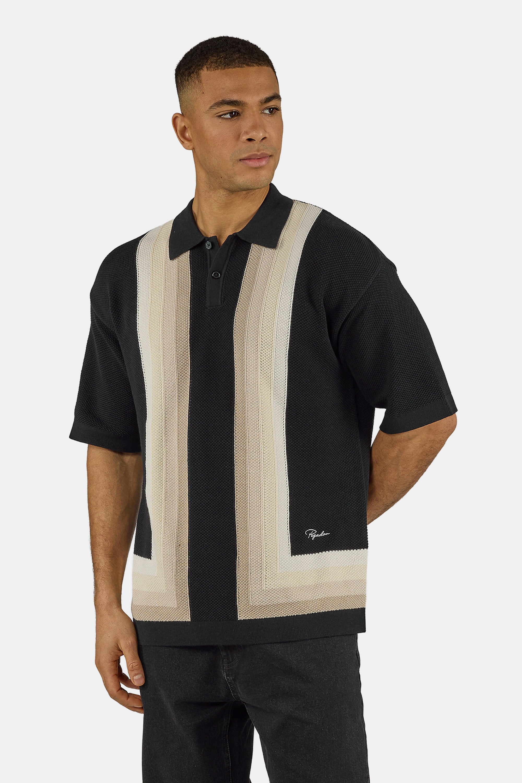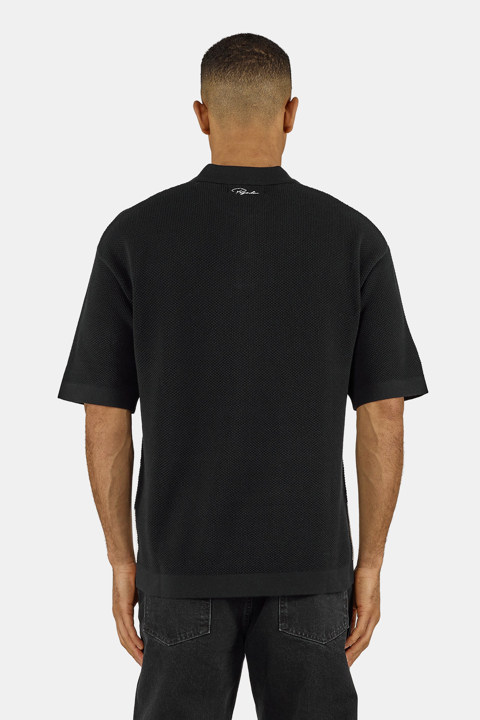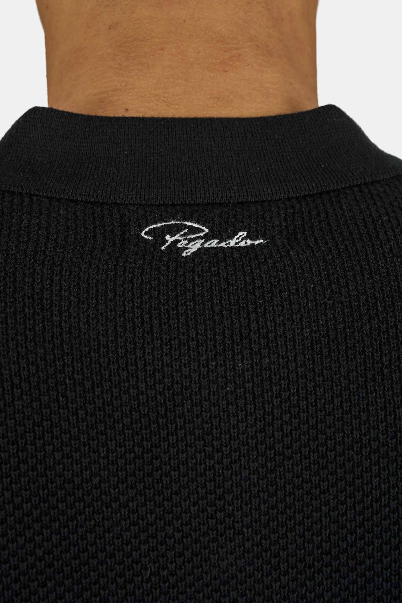 - black pique knit polo