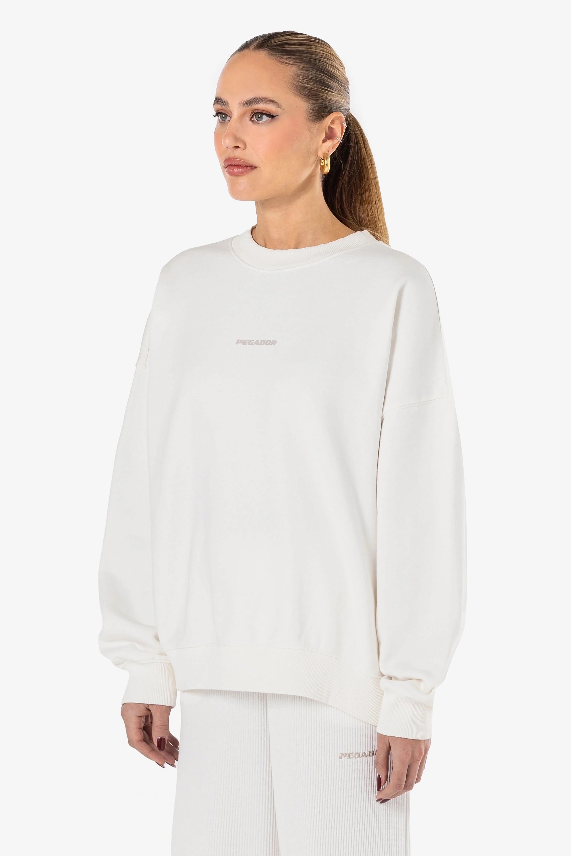 Tory Logo Oversized Sweater Washed Warm White